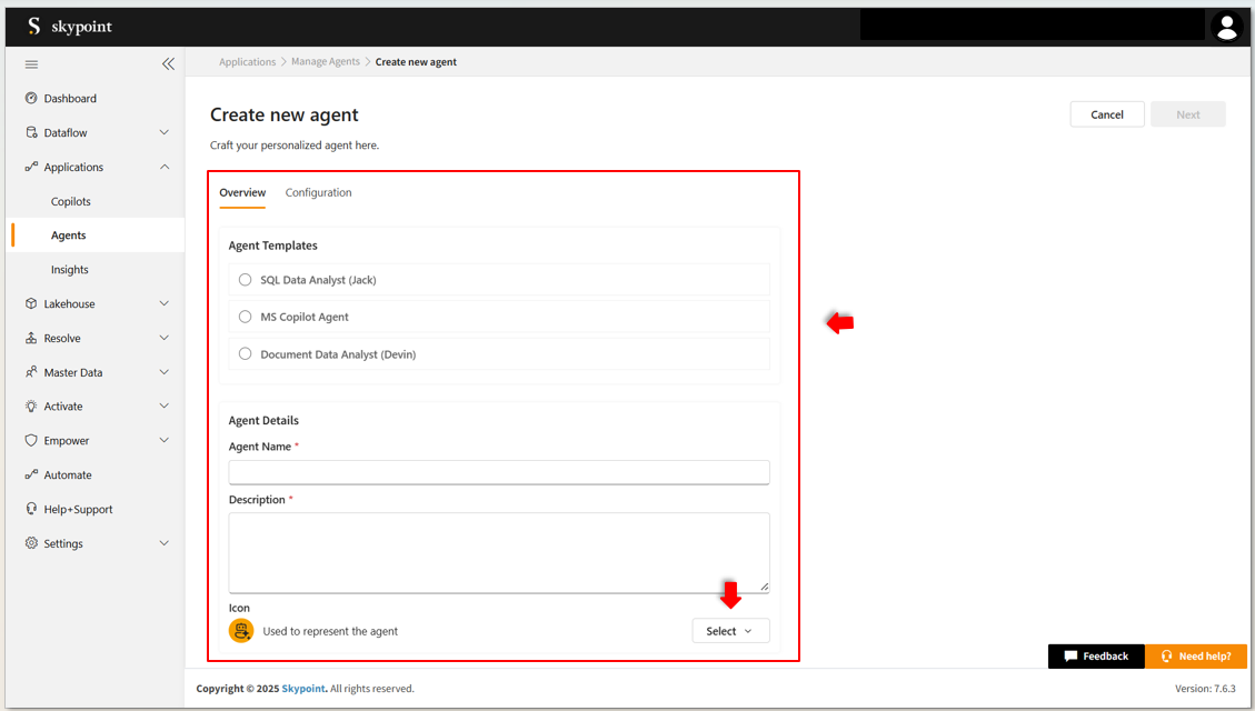 Skypoint AI Studio now supports AI Agents Configuration, enabling users to create, customize, and manage AI agents directly within the platform. Users can work with multiple agents, track version history, and tailor agent behavior to their specific business needs. With the Agents feature in Studio, users can manage task-specific AI settings enhancing flexibility, control, and performance across workflows.