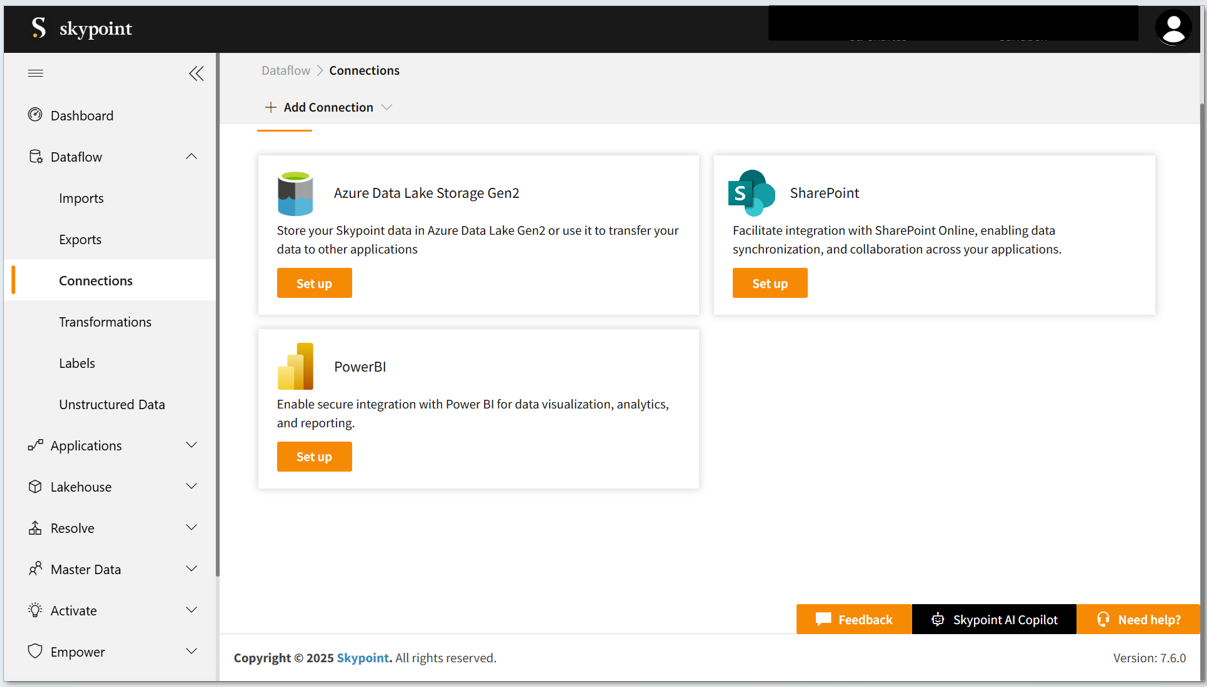 - Navigate to Dataflow and choose Connections.
